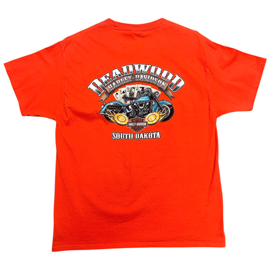 Mid-2010s Harley Davidson/Black Hills Rally Orange Graphic T-Shirt - Size Large