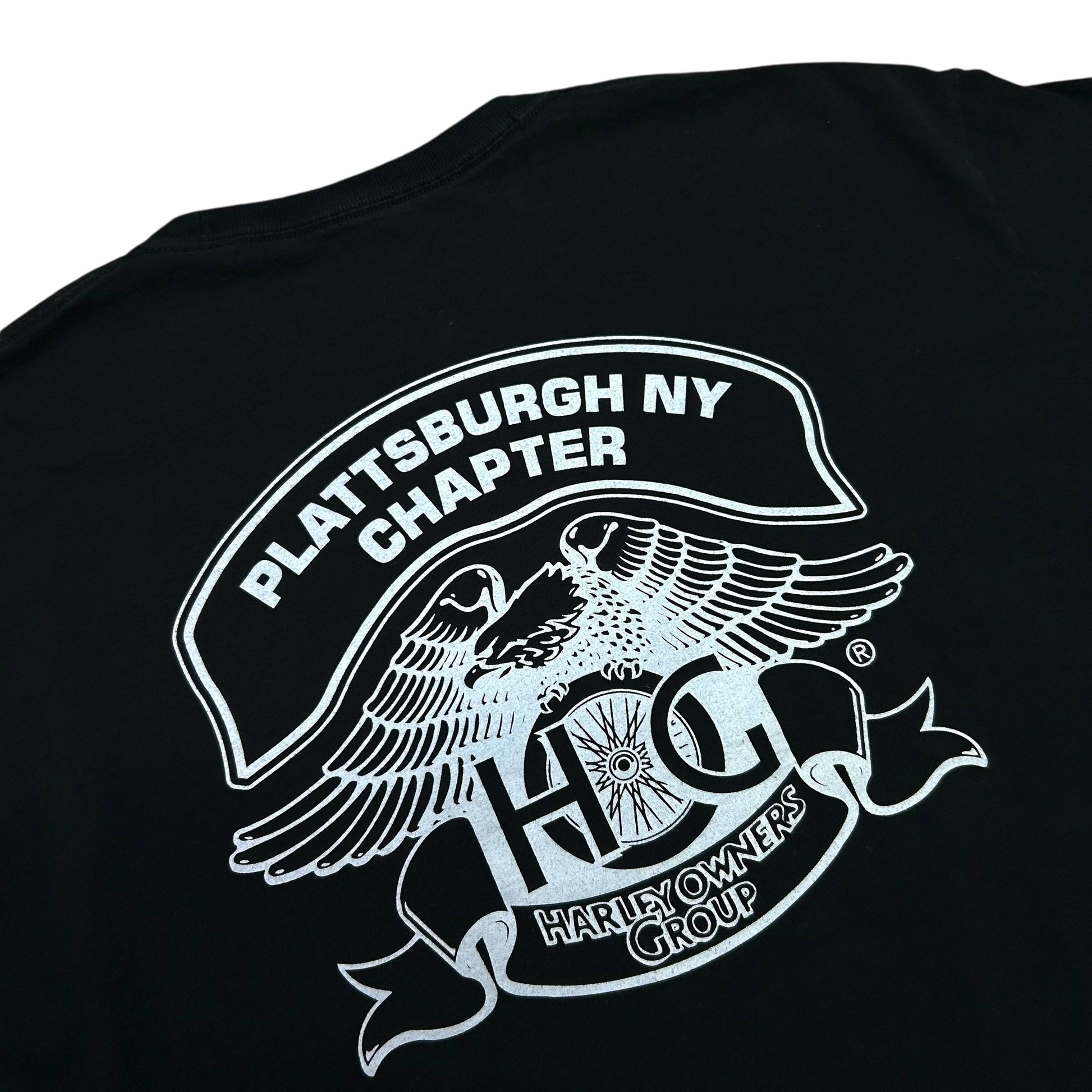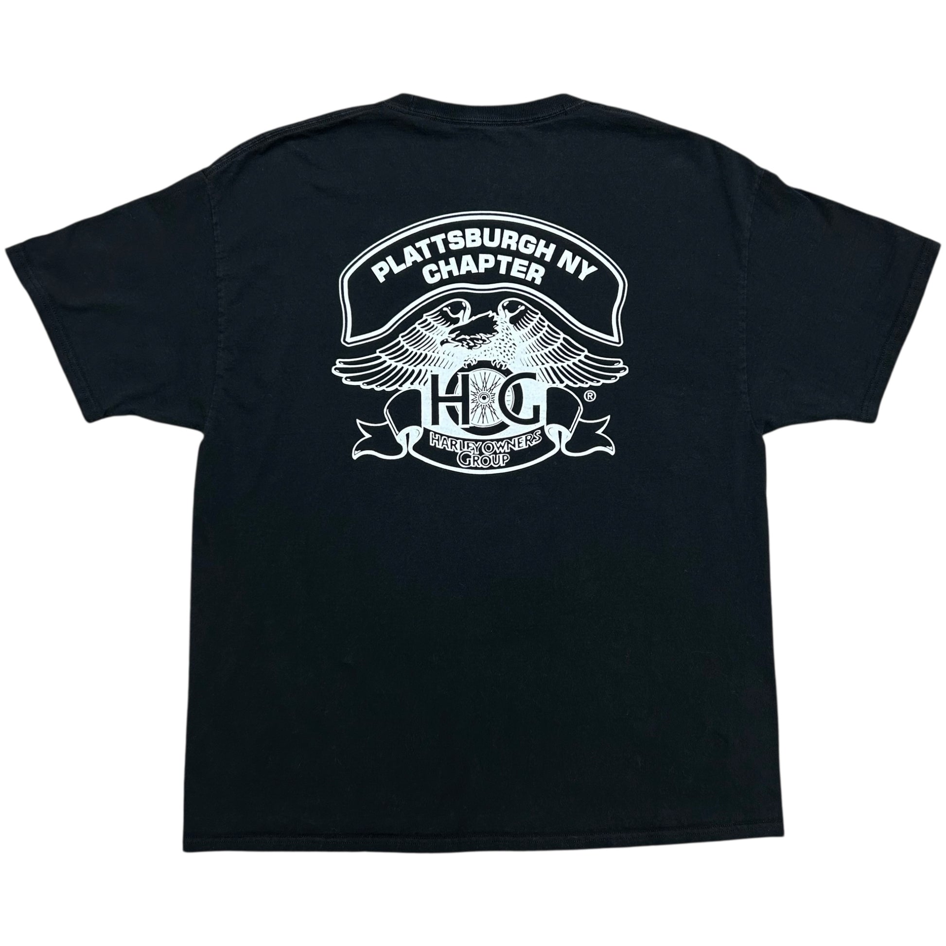 Early 2010s Plattsburgh, NY Harley Owners Group Black Skull Graphic T-Shirt - Size XL